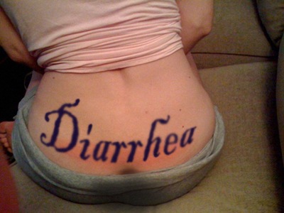 She then made the worst mistake of her life. She shit herself and passed out on his couch. When she awoke in the back of a pickup truck in the Foodtown parking lot across town, her back bore the word Diarrhea.