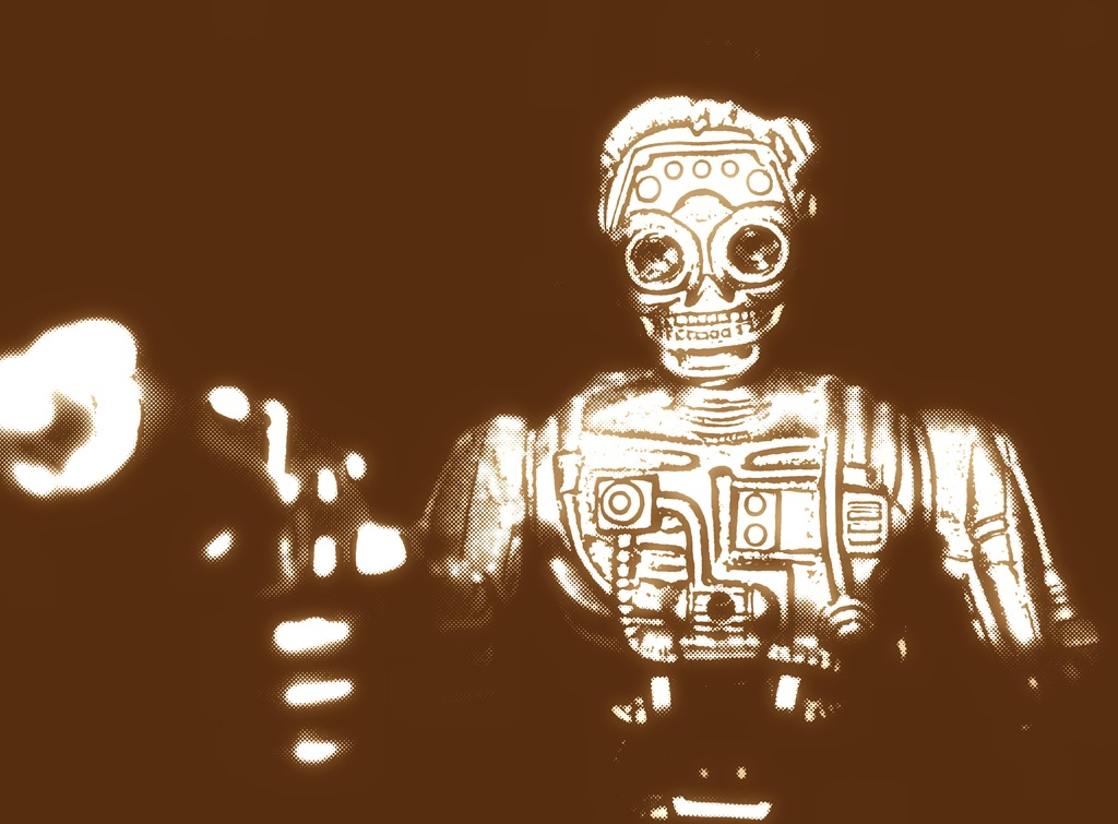 Today I met a robot. He has a gun. He shoots the gun, but not at me. He won’t break the robotic laws because he has good wiring. He looks at me and beeps. I don’t know what it means really, but I think he wants to be friends. I guess I could be friends with a robot. I mean, why not?