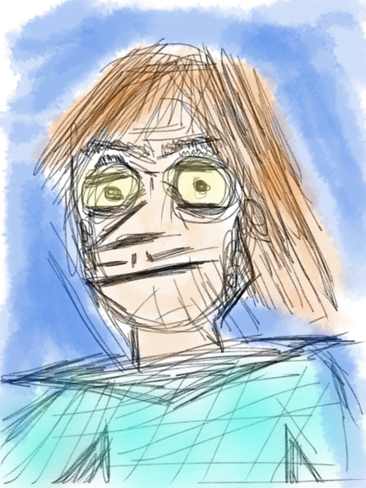 My dog posed for a sketch. I placed him on interview. He is a French serial killer. French is the language of tongue curling.
